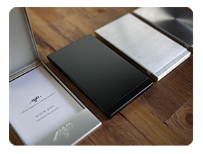 | 金属名刺入れ | あまり抵抗が無いので引っかかり難く出しやすい。 硬いので中に入れた名刺が痛み難い。 スリムなものが多いのでスーツに入れても膨らまない。 |