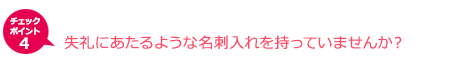 | 派手な名刺入れ | 印象に残る。 話のネタになる。 |